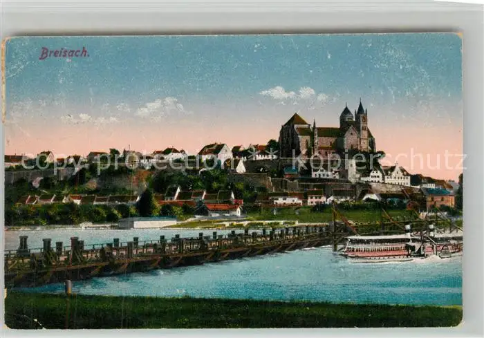 AK / Ansichtskarte Breisach_Rhein Partie am Rhein Schiffsbruecke Blick zum Muenster Breisach Rhein