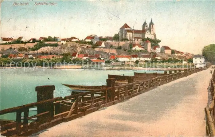 AK / Ansichtskarte Breisach_Rhein Schiffsbruecke Blick zum Muenster Breisach Rhein