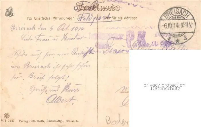 Breisach_Rhein Schiffsbruecke Blick zum Muenster Breisach Rhein postalisch gelaufen 1914 Feldpost - Stempel Erhaltung siehe scans [FriedD77] Feldpost - Stempel Frierer