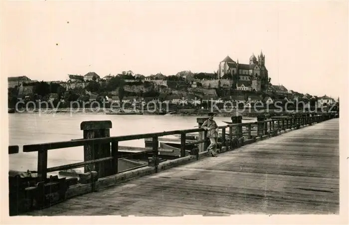 AK / Ansichtskarte Breisach_Rhein Schiffsbruecke Blick zum Muenster Breisach Rhein