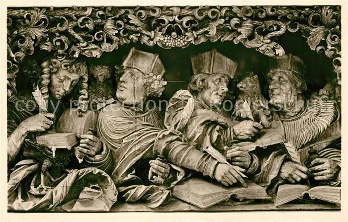 Breisach_Rhein St Stephansmuenster Hochaltar Predella Die vier Evangelisten Meister H. L. 16. Jhdt. Breisach Rhein postalisch nicht gelaufen 1921-1965 Erhaltung siehe scans [FriedD77] Frierer
