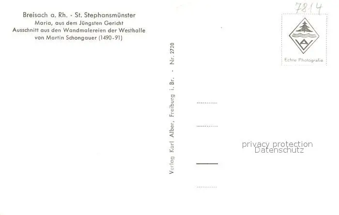 Breisach_Rhein St Stephansmuenster Maria Ausschnitt aus Wandmalereien der Westhalle von Martin Schongauer Breisach Rhein postalisch nicht gelaufen nach 1965 Erhaltung siehe scans [FriedD77] Frierer