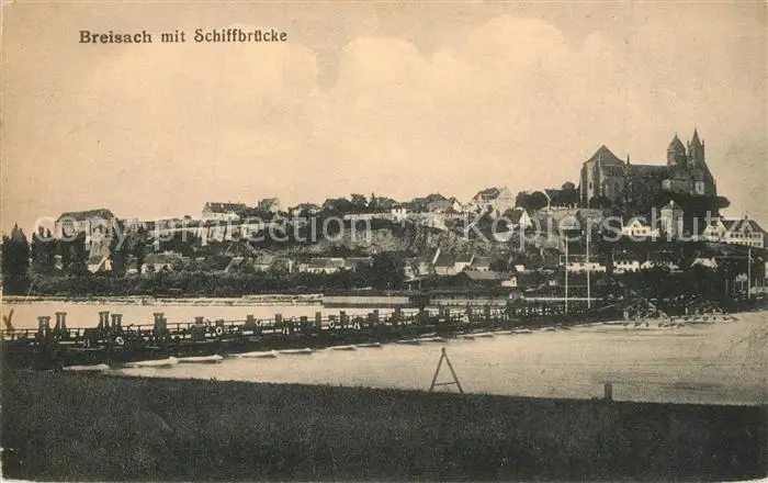 AK / Ansichtskarte Breisach_Rhein Uferpartie am Rhein Schiffsbruecke Blick zum Muenster Breisach Rhein