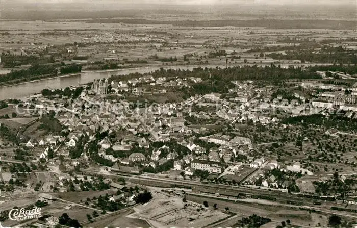 Breisach Rhein Kategorie Alte Ansichtskarten Postkarten bx77068 Breisach_Rhein mit Blick ins Elsass Fliegeraufnahme Breisach Rhein postalisch nicht gelaufen 1956 Erhaltung siehe scans [FriedD77]