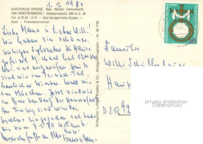 Breitenberg_Neuweiler Gasthaus Krone Breitenberg_Neuweiler postalisch gelaufen 1980 Erhaltung siehe scans [WerneD78] WernPID7