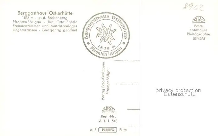 Breitenberg_Pfronten Berggasthof Gipfelkreuz Ostlerhuette Breitenberg Pfronten postalisch nicht gelaufen 1921-1965 Erhaltung siehe scans [KathaD81] Kathoren
