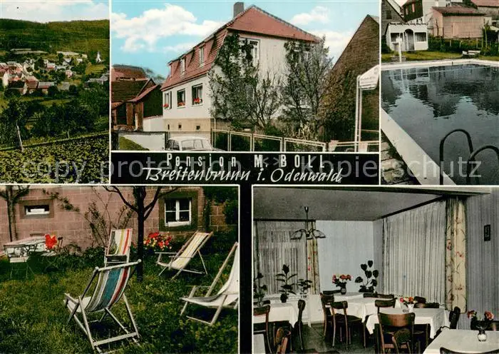 AK / Ansichtskarte Breitenbrunn_Odenwald Panorama Pension Boll Pool Liegewiese Gaststube Breitenbrunn Odenwald