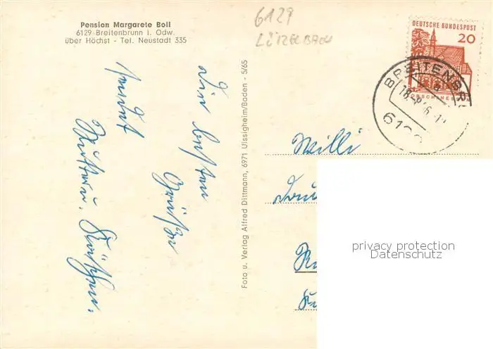 Breitenbrunn_Odenwald Panorama Pension Boll Pool Liegewiese Gaststube Breitenbrunn Odenwald postalisch gelaufen 1966 Erhaltung siehe scans [WerneD78] WernPID7