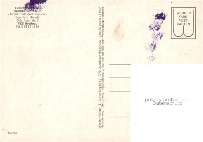 Breitnau Cafe Pension Backhof Helmle Gastraeume Zimmer Breitnau postalisch nicht gelaufen nach 1965 Erhaltung siehe scans [WerneD78] WernPID7