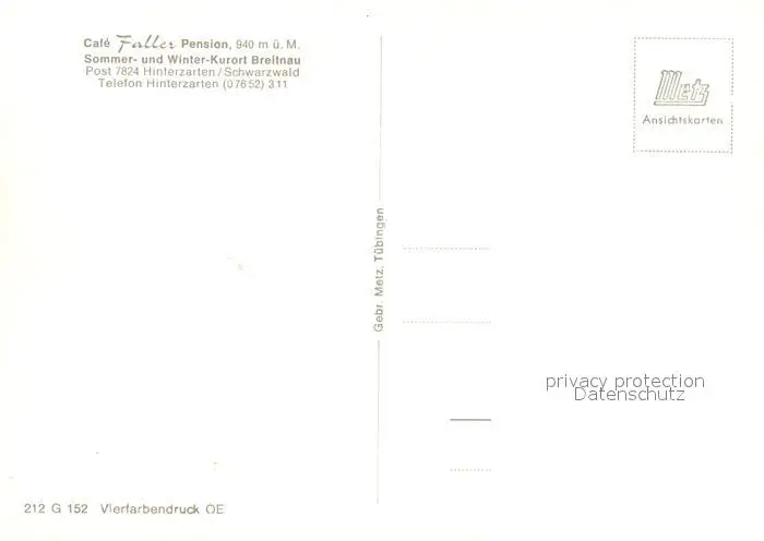 Breitnau Cafe Pension Faller Kurort im Schwarzwald Breitnau postalisch nicht gelaufen nach 1965 Erhaltung siehe scans [FriedD77] Frierer