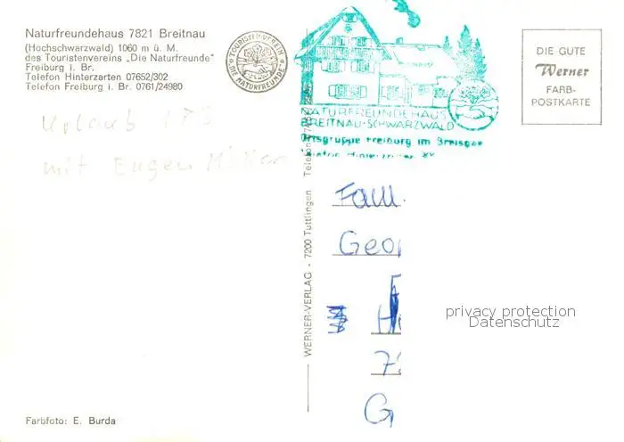 Breitnau Naturfreundehaus Breitnau Breitnau postalisch nicht gelaufen nach 1965 Erhaltung siehe scans [WerneD78] WernPID7