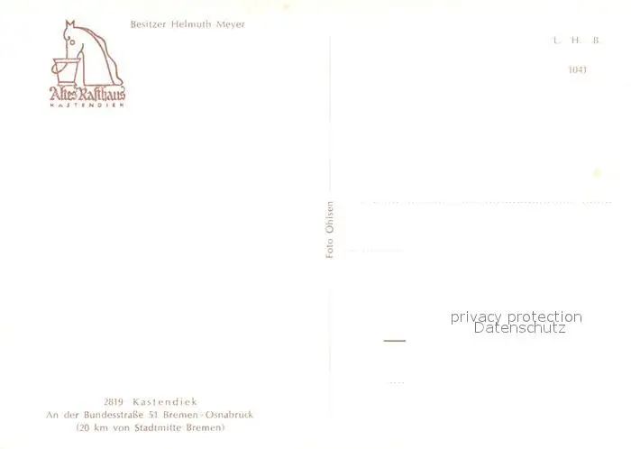Bremen Altes Rasthaus Kastendiek Bremen postalisch nicht gelaufen nach 1965 Erhaltung siehe scans [LiesaD40] LiesID40