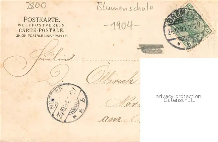 Bremen Blumenschule Windmuehle Bremen postalisch gelaufen 1904 Erhaltung siehe scans [FriedD77] Frierer