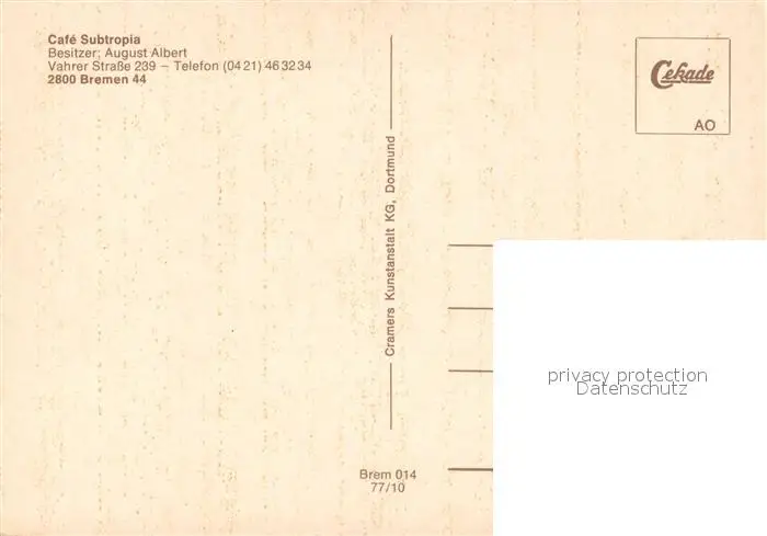 Bremen Cafe Subtropia Bremen postalisch nicht gelaufen nach 1965 Erhaltung siehe scans [KathaD81] Kathoren
