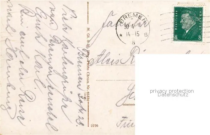 Bremen Freihafen Bremen postalisch gelaufen 1929 Erhaltung siehe scans [LiesaD40] LiesID40