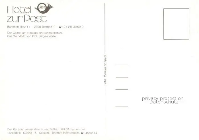 Bremen Hotel zur Post Bremen postalisch nicht gelaufen nach 1965 Erhaltung siehe scans [LiesaD40] LiesID40