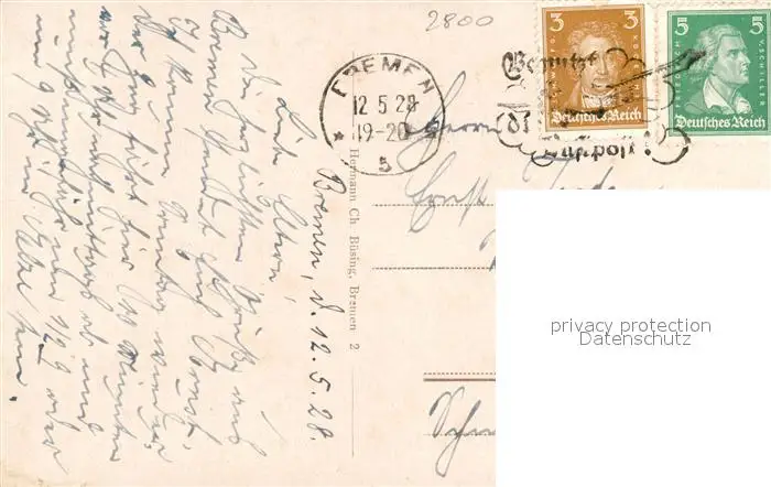 Bremen Marktplatz mit Rathaus Dom und Boerse Bremen postalisch gelaufen 1928 Erhaltung siehe scans [WerneD78] WernPID7