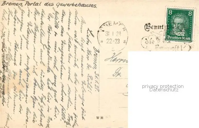 Bremen Portal des Gewerbehauses Bremen postalisch gelaufen 1928 Erhaltung siehe scans [WerneD78] WernPID7