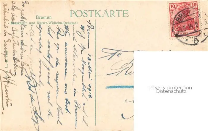 Bremen Ratskaffee und Kaiser Wilhelm Denkmal Bremen postalisch gelaufen 1914 Erhaltung siehe scans [WerneD78] WernPID7