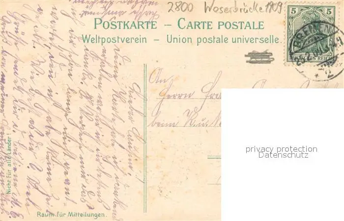 Bremen Weserbruecke Bremen postalisch gelaufen 1909 Erhaltung siehe scans [FriedD77] Frierer