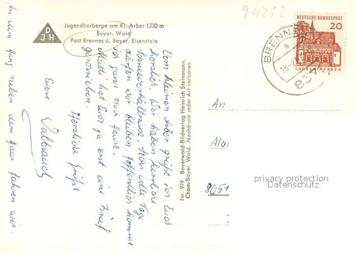 Brennes_Bayerisch_Eisenstein Jugendherberge am Kleinen Arber Arberschutzhaus Winterlandschaft Bayerischer Wald Brennes_Bayerisch postalisch gelaufen 1967 Erhaltung siehe scans [FriedD77] Frierer
