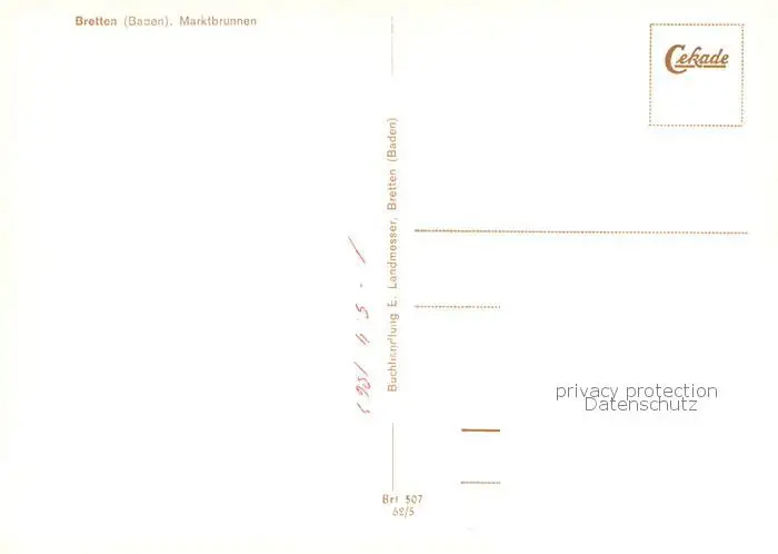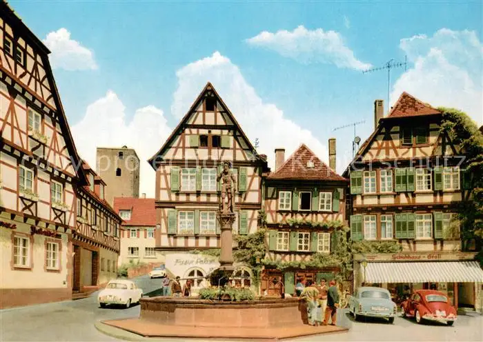Bretten_Baden Marktbrunnen Altstadt Fachwerkhaeuser Bretten_Baden postalisch nicht gelaufen 1962 Erhaltung siehe scans [FriedD77] Frierer
