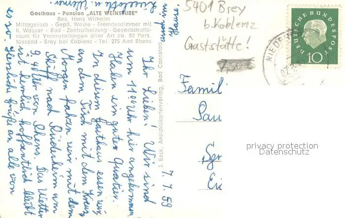Brey Panorama Gasthaus Alte Weinstube Bueffet Innenansicht Brey postalisch gelaufen 1959 Erhaltung siehe scans [WerneD78] WernPID7