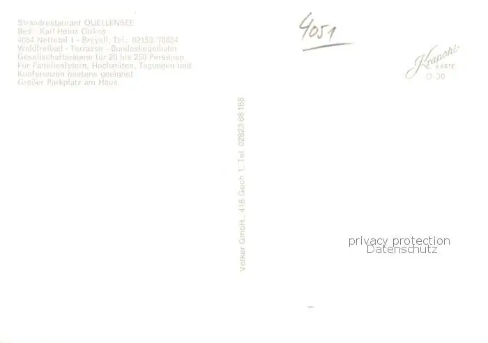 Breyell Café Restaurant Quellensee Breyell postalisch nicht gelaufen nach 1965 Erhaltung siehe scans [FriedD77] Frierer