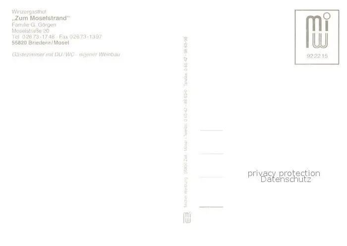 Briedern Winzergasthof Zum Moselstrand Gaststube Briedern postalisch nicht gelaufen nach 1965 Erhaltung siehe scans [WerneD78] WernPID7