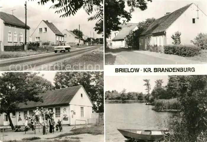 AK / Ansichtskarte Brielow Chausseestrasse Hauptstrasse Kindergarten Partie am See Brielow