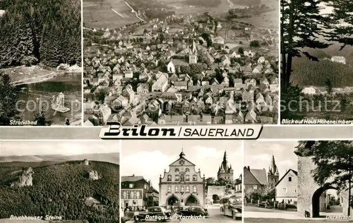 AK / Ansichtskarte Brilon Strandbad Fliegeraufnahme Haus Hoehenelmberg Bruchhauser Steine Rathaus Pfarrkirche Derkertor Brilon
