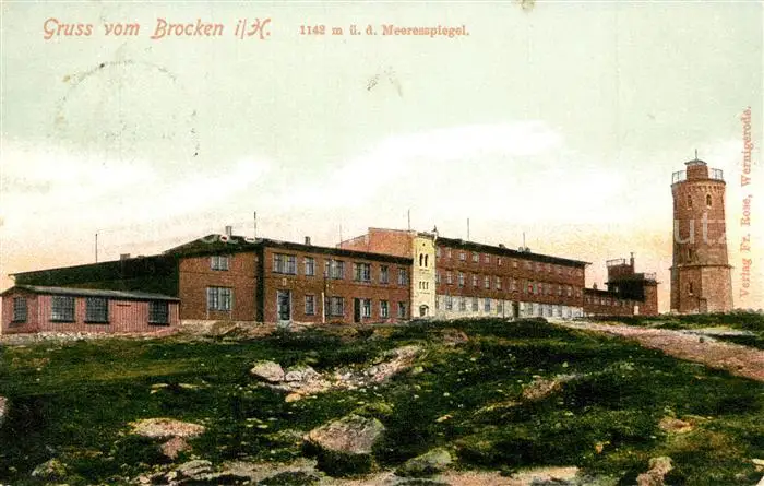 Brocken_Harz Berghotel Gaststaette Aussichtsturm Brocken Harz postalisch gelaufen 1907 Erhaltung siehe scans [FriedD77] Frierer