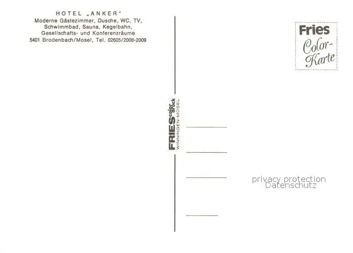Brodenbach Hotel Anker Brodenbach postalisch nicht gelaufen nach 1965 Erhaltung siehe scans [KathaD81] Kathoren