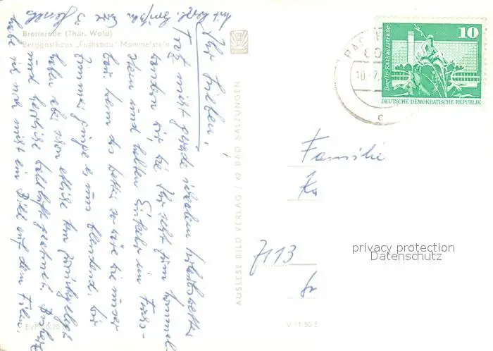 Brotterode Kategorie Alte Ansichtskarten Postkarten bx62400 Brotterode Berggasthaus Fuchsbau MAmmelstein Brotterode postalisch gelaufen nach 1965 Erhaltung siehe scans [KathaD81]