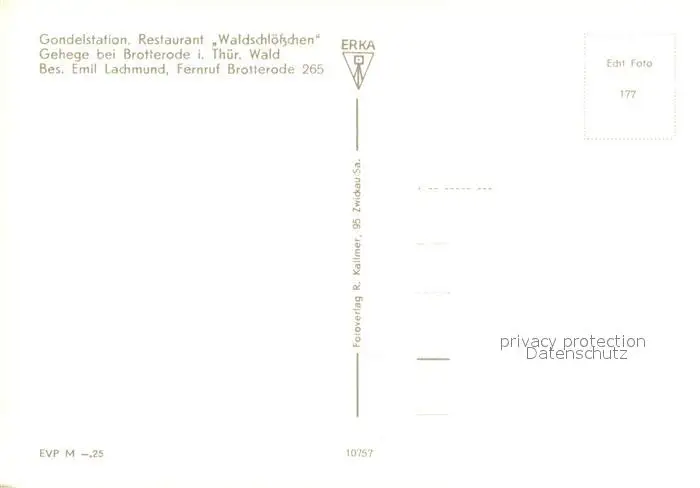 Brotterode Gondelstation Restaurant Waldschloesschen Gehege Brotterode postalisch nicht gelaufen 1970 Erhaltung siehe scans [FriedD77] Frierer