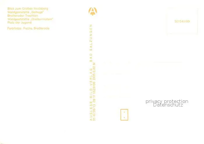 Brotterode Panorama Grosser Inselsberg Waldgaststaette Gehege Trachten Platz der Jugend Brotterode postalisch nicht gelaufen 1989 Erhaltung siehe scans [FriedD77] Frierer