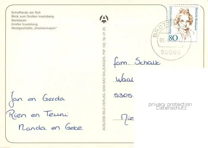 Brotterode Schafherde am Roh Gr Inselsberg Marktplatz Fernmeldeturm Waldgaststaette Dreiherrnstein Brotterode postalisch gelaufen nach 1965 Erhaltung siehe scans [WerneD78] WernPID7