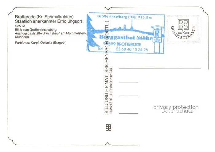 Brotterode Schule Panorama Grosser Inselsberg Ausflugsgaststaette am Mommelstein Klubhaus Brotterode postalisch nicht gelaufen nach 1965 Erhaltung siehe scans [FriedD77] Frierer