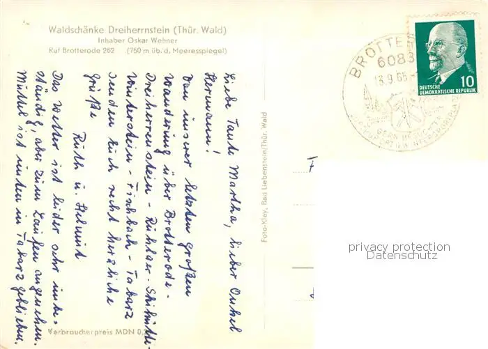Brotterode Waldschaenke Dreiherrnstein Gaststube Brotterode postalisch gelaufen nach 1965 Erhaltung siehe scans [FriedD77] Frierer