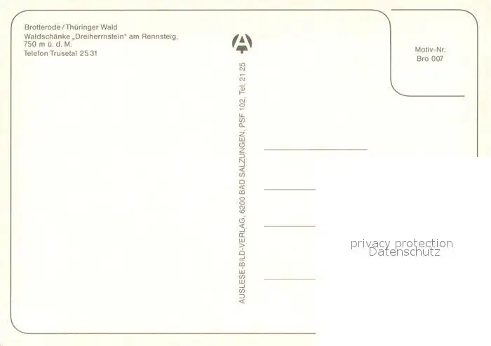 Brotterode Waldschaenke Dreiherrnstein am Rennsteig Brotterode postalisch nicht gelaufen nach 1965 Erhaltung siehe scans [FriedD77] Frierer