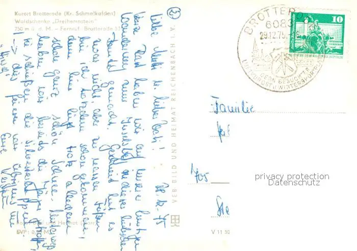 Brotterode Waldschenke Dreiherrnstein im Winter Schnee Brotterode postalisch gelaufen 1975 Erhaltung siehe scans [LiesaD40] LiesID40
