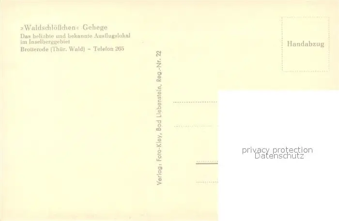 Brotterode Waldschloesschen Gehege Ausflugslokal Handabzug Brotterode postalisch nicht gelaufen 1957 Erhaltung siehe scans [FriedD77] Frierer