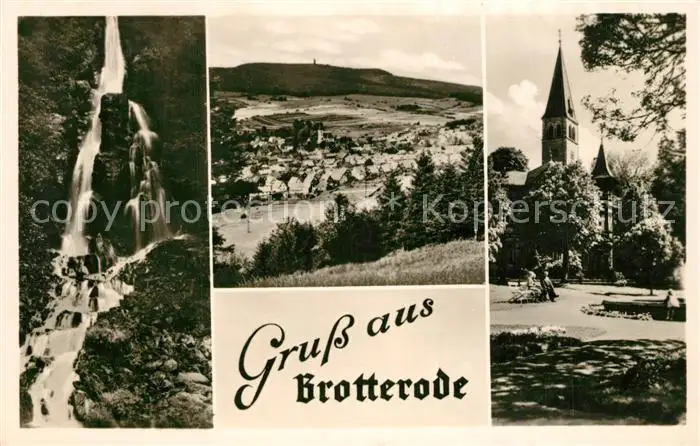 AK / Ansichtskarte Brotterode Wasserfall Panorama Kirche Brotterode