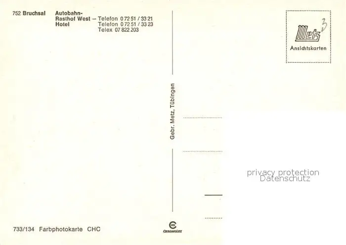 Bruchsal Autobahn Rasthof West Hotel Bruchsal postalisch nicht gelaufen nach 1965 Erhaltung siehe scans [FriedD77] Frierer