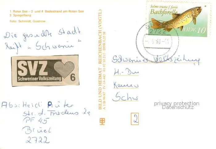 Brueel_Mecklenburg_Vorpommern Roter See Badestrand Spiegelberg Brueel_Mecklenburg postalisch gelaufen 1990 Erhaltung siehe scans [FriedD77] Frierer