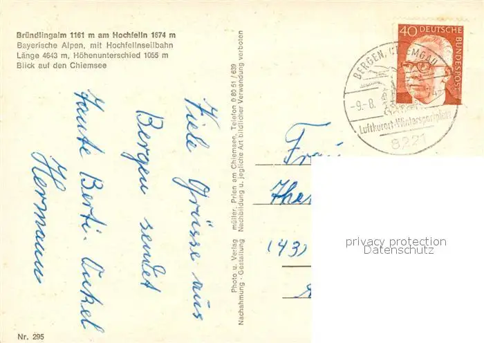 Bruendlingalm Kategorie Alte Ansichtskarten Postkarten bx60147 Bruendlingalm am Hochfelln mit Seilbahn und Chiemseeblick Bruendlingalm postalisch gelaufen 1974 Erhaltung siehe scans [WerneD78]