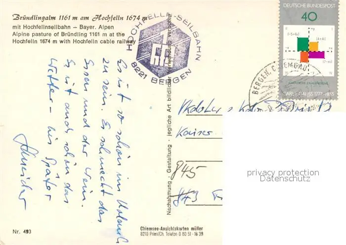 Bruendlingalm_1161m_Hochfelln mit Hochfellnseilbahn postalisch gelaufen 1976 Erhaltung siehe scans [WerneD78] WernPID7