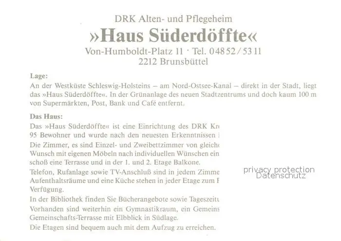 Brunsbuettel Haus Suederdoeffte DRK Alten und Pflegeheim Brunsbuettel postalisch nicht gelaufen nach 1965 Werbekarte (keine Postkarte) Erhaltung siehe scans [FriedD77] Werbekarte (keine Postkarte) Frierer