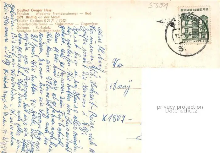 Bruttig_Mosel Gasthof Hess Restaurant Garten Bruttig Mosel postalisch gelaufen nach 1965 Erhaltung siehe scans [FriedD77] Frierer