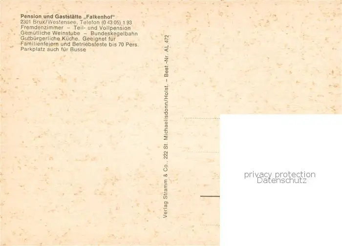 Brux_Westensee Pension Gaststaette Falkenhof Gastraeume Bar Brux_Westensee postalisch nicht gelaufen nach 1965 Erhaltung siehe scans [WerneD78] WernPID7